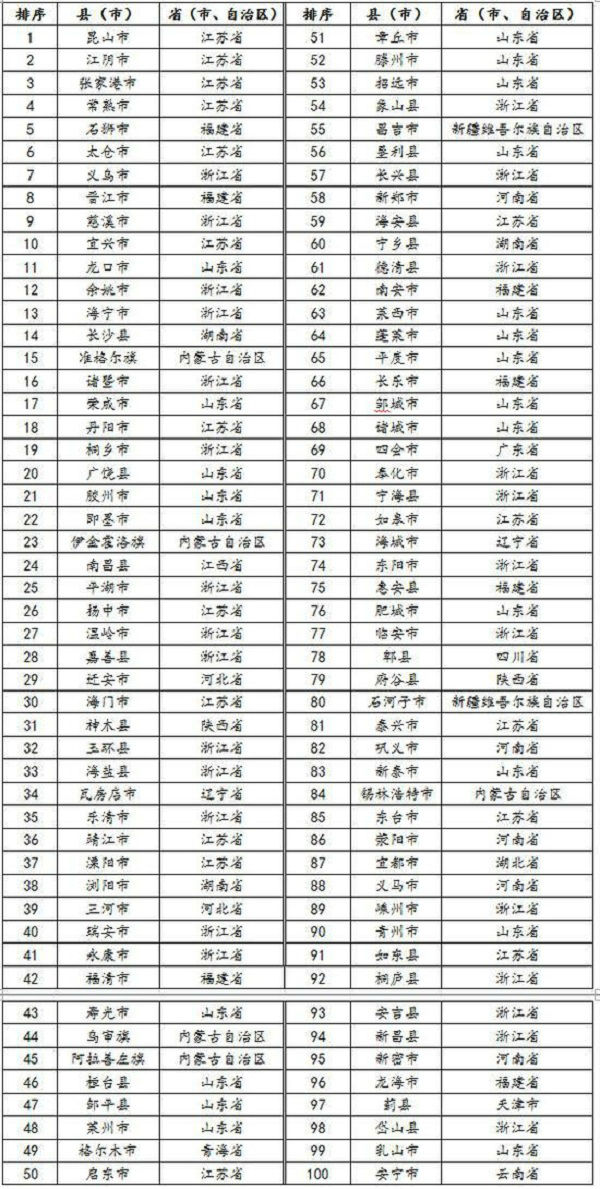 附:“賽迪百強榜-縣域經(jīng)濟100強(2016)”榜單