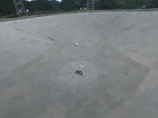 FAST的反射面常常被形容成“大鍋”。它是由4450塊邊長10多米的三角形的反射面板單元拼成。全部面板鋪設(shè)持續(xù)了11個月的時間。