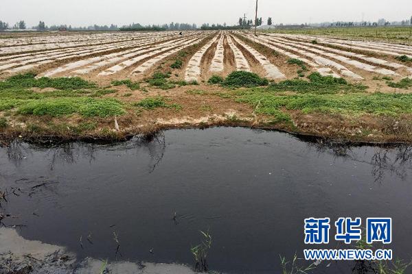 這是4月27日拍攝的石家莊市藁城區(qū)興安鎮(zhèn)滹沱河河道內(nèi)緊鄰菜地的排污渠。