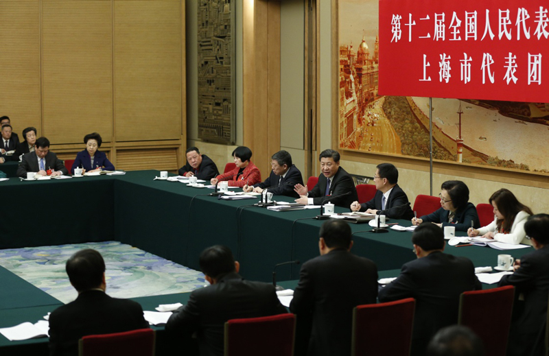 圖為:2016年3月5日,習(xí)近平參加十二屆全國(guó)人大四次會(huì)議上海代表團(tuán)的審議。