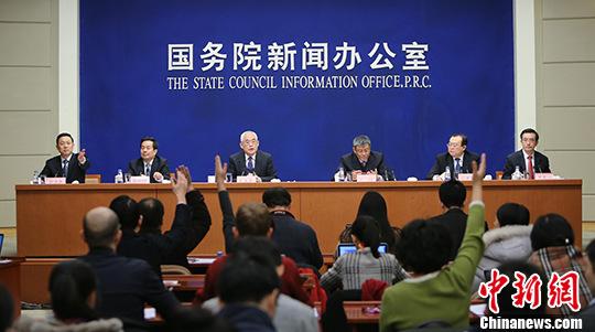 資料圖:2016年1月15日上午,來自中央紀委監(jiān)察部的5位高官亮相國務院新聞辦的新聞發(fā)布會。圖為新聞發(fā)布會現場。 中新社記者 楊可佳 攝