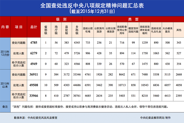 2015年12月全國查處違反中央八項(xiàng)規(guī)定精神問題4785起