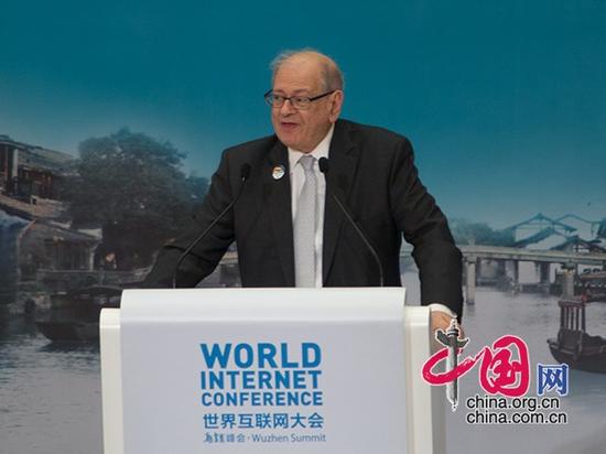 本屆會議是向互聯(lián)網(wǎng)的演化致敬,互聯(lián)網(wǎng)從一個小型的科研項(xiàng)目,經(jīng)過40年的歷程,從幾臺電腦開始發(fā)展到了現(xiàn)在上十億的一個覆蓋全球的龐大的網(wǎng)絡(luò)系統(tǒng)。本次會議也是充分的彰顯了中國再把互聯(lián)網(wǎng)融入到世界的方方面面所取得的巨大進(jìn)步,我特別要指出習(xí)主席在開幕會上提到的五點(diǎn)主張,有媒體記者問過我您覺得五點(diǎn)主張哪個最重要,事實(shí)上我認(rèn)為這五點(diǎn)都非常重要,可以促進(jìn)互聯(lián)網(wǎng)的進(jìn)一步發(fā)展,因?yàn)檫@五點(diǎn)主張是一攬子的闡述,闡述了互聯(lián)網(wǎng)是一個非常獨(dú)特的共同的家園,這是我們未來數(shù)字化的發(fā)展前景。而且互聯(lián)網(wǎng)是沒有國界的,沒有一個統(tǒng)一的管理機(jī)構(gòu),互聯(lián)網(wǎng)是一個大家,所有人都共同承擔(dān),有一個共享合作的責(zé)任。因此我們在各層面面臨如此之多的前所未有的挑戰(zhàn)。