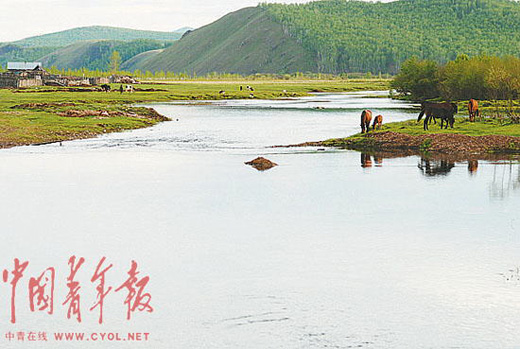 從海拉爾出發(fā),向北行駛4個(gè)小時(shí)左右,穿過(guò)陳巴爾虎旗草原和大興安嶺白樺林之后,來(lái)到恩和村。恩和村坐落在一個(gè)很大的山間谷地,得爾布爾河的支流淺淺地淌過(guò)這個(gè)小村莊,形成一片彎彎曲曲的濕地,河邊是起伏的草場(chǎng)和稀疏的樹(shù)林。周邊的山坡線條和緩,山坡上布滿了尚未變綠的草,白樺林一直延伸到山腳。