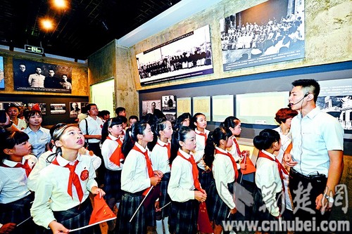 昨日,八路軍武漢辦事處舊址,小學生參觀《大武漢1938》歷史陳列展。(記者李溪攝)