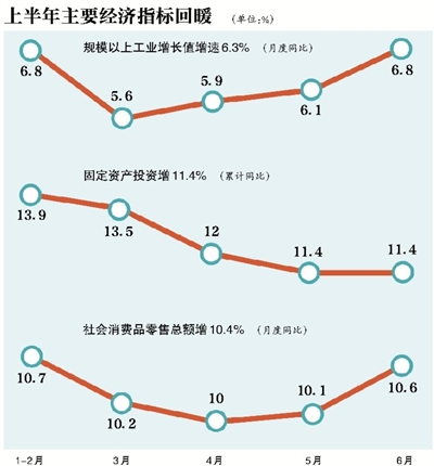 對上半年經(jīng)濟形勢,國家統(tǒng)計局報告指出:國民經(jīng)濟運行處在合理區(qū)間,主要指標逐步回暖,呈現(xiàn)緩中趨穩(wěn)、穩(wěn)中有好的發(fā)展態(tài)勢。