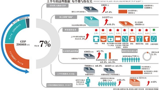 ?今年國民經(jīng)濟“中考”交出了怎樣一份答卷?昨日,國家統(tǒng)計局新聞發(fā)言人盛來運在國新辦發(fā)布會上公布了一系列上半年經(jīng)濟數(shù)據(jù),其中,國內生產總值GDP同比增長7.0%。盛來運表示,下半年經(jīng)濟增長好于上半年“可能是一個大概率事件”。
