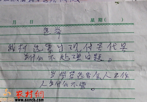 近日,正值第九屆村民委員會選換屆選舉之際,咸陽市秦都區(qū)馬泉街道辦事處粉鋪村村民向陜西農(nóng)村報(bào)(網(wǎng))反映,該村在本次換屆選舉中有人賄選,并在選票上作出了記號。對此,記者進(jìn)行了情況調(diào)查。