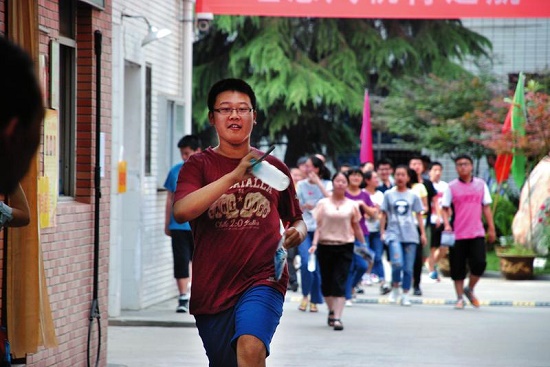 下午5時(shí)15分,考點(diǎn)的大門打開,李女士將氣球舉得老高,接到兒子后,詢問(wèn)幾句答題的情況,接過(guò)他手中的文具袋,然后離開,周圍的人看到這一幕,紛紛感嘆“可憐天下父母心”。