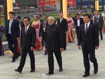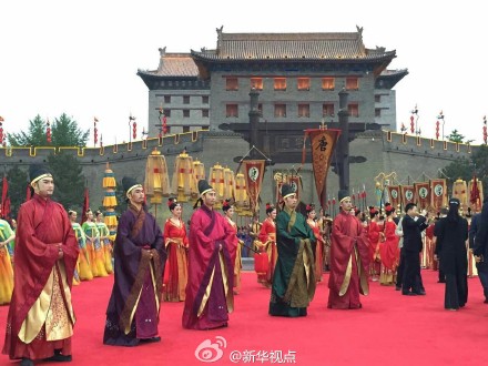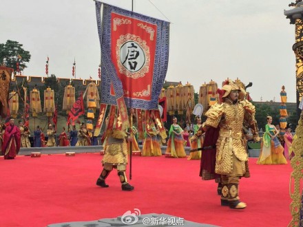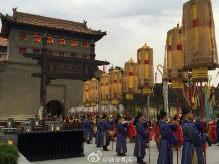 新華網(wǎng)北京5月14日電 據(jù)新華社“新華視點(diǎn)”微博報道,14日傍晚,西安以仿古入城式歡迎印度總理莫迪“入城”。仿古武士和宮女列隊(duì)迎接,身著唐朝服飾的“官員”致歡迎詞。陜西省長婁勤儉向莫迪贈送“通關(guān)文牒”,西安市長董軍贈送城市“金鑰匙”。吊橋落下,城門緩緩打開,莫迪走進(jìn)月城,象征著進(jìn)入中國國門。(譚晶晶、王慧慧)