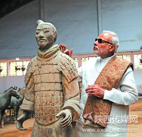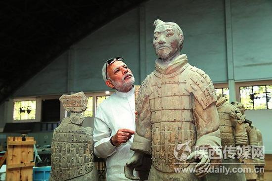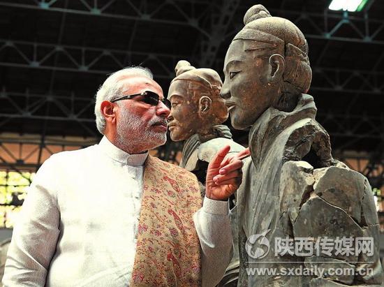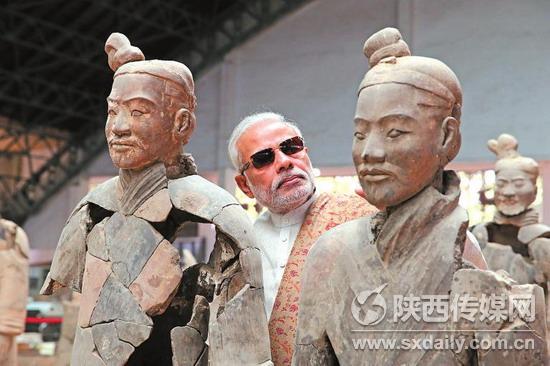5月14日,在秦兵馬俑博物館一號(hào)坑,印度總理莫迪迷上了秦兵馬俑。