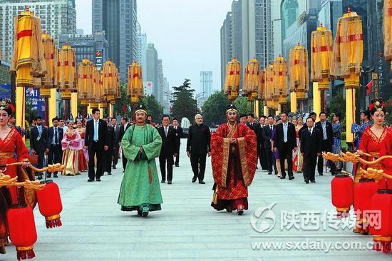 5月14日,古城西安用一場(chǎng)盛唐氣派的入城儀式迎接莫迪。