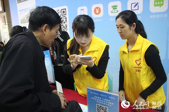 市民在工作人員的幫助下,“嘗鮮”手機(jī)支付