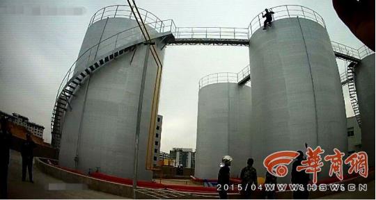 因工程款被拖欠,男子一時沖動竟爬上了12米高的儲油罐罐頂,稱解決不了問題就要跳下去。4月16日下午,榆林市公安局榆橫分局沙河口派出所與榆林市公安消防支隊高新大隊消防戰(zhàn)士合力救下該男子。