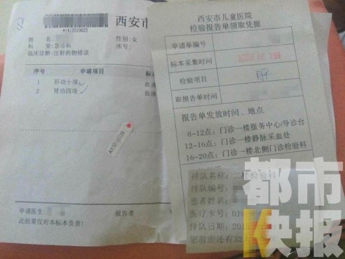 其實(shí)事發(fā)之后,藍(lán)田縣中醫(yī)醫(yī)院就證實(shí)了此事,翻閱到病歷的最后一頁(yè),誤輸兩個(gè)字,格外的醒目。藥品誤輸后的第一時(shí)間,欣欣的家人和醫(yī)務(wù)人員,就把孩子帶到西安市兒童醫(yī)院,做進(jìn)一步檢查。欣欣的母親:“上午做了個(gè)肝功能檢查,現(xiàn)在得等結(jié)果,娃現(xiàn)在沒(méi)精神的很?!?
