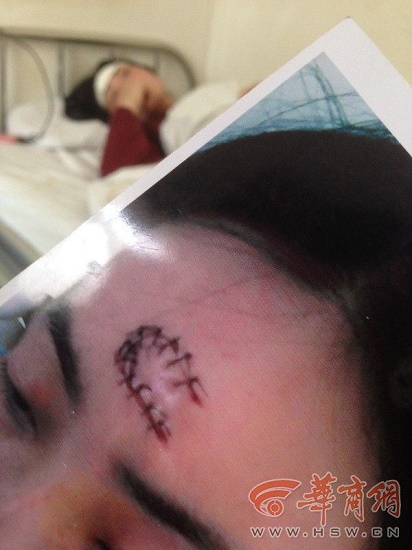 4月20日,寶雞市民吳先生坐在女兒婷婷的病床前一臉惆悵,幾天前在寶雞職業(yè)技術學院一間宿舍發(fā)生群毆事件,就讀于該校的婷婷在群毆中受傷,并在額頭上留下巨大的傷疤。該校稱,正在積極處理此事,目前警方已經(jīng)介入調查。