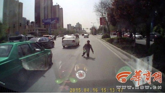 4月16日下午5時許,網(wǎng)友“創(chuàng)業(yè)者李鑫”微博爆料稱:“行車至咸陽世紀(jì)大道海泉灣附近,被一老婦一年輕女子合伙碰瓷,幸虧眼尖手快并安裝有行車記錄儀,請相關(guān)部門重視此類喪心病狂的行為,太寒心了!”