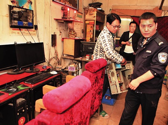 15日下午,民警將車家堡村一處黑網(wǎng)吧的主服務(wù)器暫扣