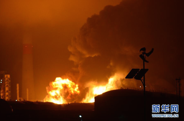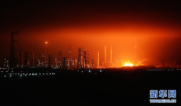 多名現(xiàn)場目擊者稱,PX工廠爆炸巨響后,火光照亮夜空,濃煙滾滾,附近居民感覺到劇烈震動。