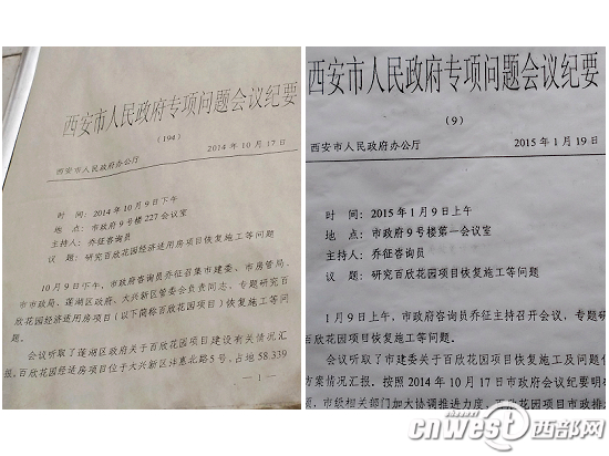 西安市政府于去年10月和今年1月兩次召開專題會議協(xié)調(diào)百欣花園恢復(fù)施工問題。