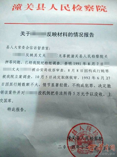 2013年,王女士開始寫材料到有關(guān)部分反映,潼關(guān)縣檢察院查卷后于2014年給師女士進(jìn)行了答復(fù)和解釋,但師女士并不滿意。
