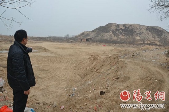 據(jù)村民祁先生介紹,這是該村一位姓田的村干部承包的耕地,共計(jì)30多畝,最初這片土地上栽種的是果樹,但自從2008年之后,將這邊耕地用來堆沙,土地表面上的沙子賣完之后。2014年3月開始,又直接在這幾十畝土地上挖沙,到目前,該片耕地已經(jīng)無法耕種。當(dāng)記者問及在此期間是否有相關(guān)部門予以阻止。當(dāng)?shù)卮迕窀嬖V記者,自2008年到2014年這6年期間,他們?cè)啻蜗蛐潞辖值擂k舉報(bào)投訴,新合街道辦也出面檢查過幾次,但街辦干部走后挖沙仍然持續(xù)。