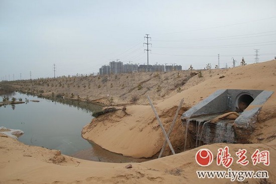 榆林市西南新區(qū)近來出現(xiàn)污水亂排亂放現(xiàn)象較為嚴重,榆林經(jīng)濟開發(fā)區(qū)匯通熱電廠向廠區(qū)外排放工業(yè)污水,排放形成一個面積約500平方米的積水池。另外在距該廠區(qū)不遠處的火車道東側,西南新區(qū)生活污水管道外泄形成3個面積均為600平方米的污水池,散發(fā)著惡臭。