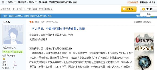 實(shí)名舉報(bào):李塬社區(qū)副支書弄虛作假、違規(guī)