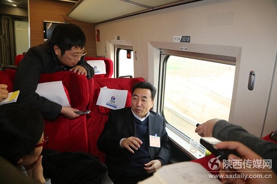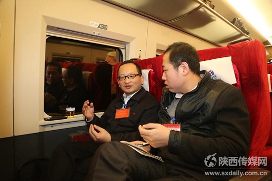 3月2日上午,住陜?nèi)珖舜蟠沓烁哞F離陜赴京,參加3月5日開幕的十二屆全國人大三次會議。途中,代表們抓緊時(shí)間完善建議,被隨團(tuán)的各路新聞媒體記者“包圍”。