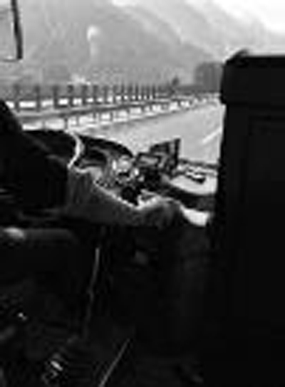 高速路上,正駕駛的司機(jī)和乘務(wù)員玩起游戲