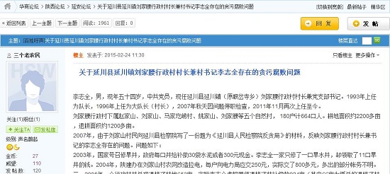2007年,由于劉家山村民向延川縣檢察院寫了一份題為《延川縣人民檢察院反貪局》的材料,反映劉家腰行政村村長兼書記的李志全存在的問題。問題如下: