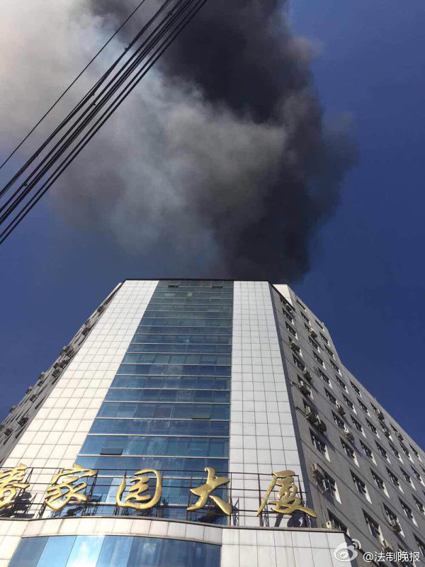 北京潘家園大廈起火 消防車已到位