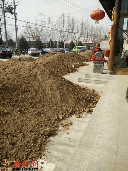 羊肉店門(mén)口被土堆堵住