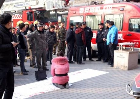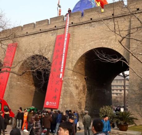2月9日9點,一名男子拉著“維權(quán)討薪為何這么難”條幅以游客身份爬上南門城墻,一名女子跪在城墻下流淚。據(jù)了解,因為和榆林法院產(chǎn)生糾紛,男子欲跳下城墻。最新情況:女子上城墻勸丈夫下來,消防已在城墻洞下搭起氣墊。(記者 毛蜜娜 蔡勇)