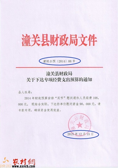 潼關縣財政局潼財辦預 [2014]88號文件