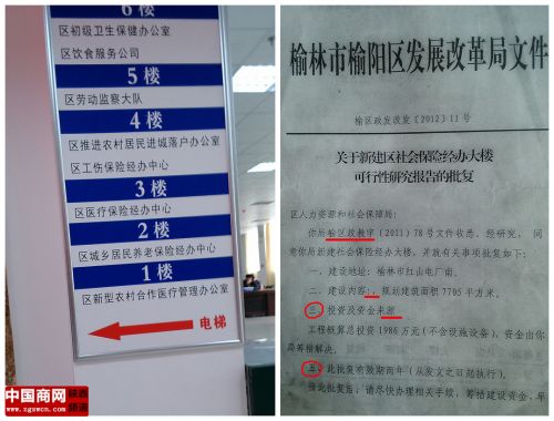 榆林市城鄉(xiāng)建設(shè)規(guī)劃局的官方網(wǎng)站上記者找到一份《榆林市榆陽區(qū)人力資源和社會(huì)保障局批前公示》,里面一份時(shí)間為2012年5月30日的《榆林市建設(shè)工程規(guī)劃許可證》顯示,該項(xiàng)目總投資1986萬,建筑面積10449.8平方米(其中含地下一層面積3053.12平方米,公廁60.8平方米),功能要求為辦公,建設(shè)單位為榆陽區(qū)人力資源和社會(huì)保障局。