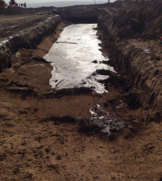 據(jù)定邊縣安邊鎮(zhèn)虎老莊村群眾舉報,長慶油田采油六廠在他們村的幾個井場,打完井、試完油、壓裂完后已經(jīng)裝機(jī)生產(chǎn)了,可井場內(nèi)的土坑仍然沒有處理,污染非常嚴(yán)重。他們曾多次向附近的作業(yè)區(qū)反映,但沒有任何人出面管理。后來他們發(fā)現(xiàn)企業(yè)打發(fā)人開著大型鏟車就地將坑子填埋,由于里面水太多,現(xiàn)在只填埋了半個坑子,半個坑子仍然扔在那里。