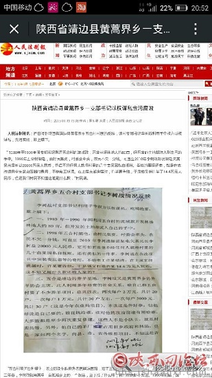 接到陜西省靖邊縣黃蒿界鄉(xiāng)五合村村民的反映,該村支部書(shū)記李樹(shù)戰(zhàn)利用手中權(quán)力以權(quán)謀私,貪污腐敗,欺上瞞下。