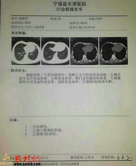 醫(yī)院出具的被打傷農(nóng)民工CT診斷報(bào)告