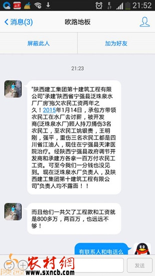 陜西建工集團(tuán)第十建筑工程有限公司“承建‘陜西省寧強(qiáng)縣泛珠泉水廠廠房’拖欠農(nóng)民工資兩年之久!2015年1月14日,承包方帶領(lǐng)農(nóng)民工在水廠去討薪,被開發(fā)商(泛珠泉水廠)雇人持刀捅傷3名農(nóng)民工,導(dǎo)致農(nóng)民工姚銀貴,王明剛,強(qiáng)平重傷,三名農(nóng)民工都是四川省江油人,現(xiàn)住在寧強(qiáng)縣天津醫(yī)院治療。經(jīng)陜西寧強(qiáng)縣政府調(diào)節(jié)開發(fā)商和承建方各拿一百萬付農(nóng)民工工資??芍两裎覀円环皱X也沒見到?,F(xiàn)在泛珠泉水廠負(fù)責(zé)人,及陜西建工集團(tuán)第十建筑工程有限公司”負(fù)責(zé)人均不露面??!