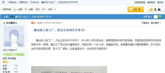 網(wǎng)曝漢中東關(guān)派出所不作為 雇兇傷人案件80天無(wú)果