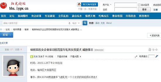 網(wǎng)曝榆林知名女企業(yè)家司機駕豪車軋死女孩愛犬 威脅事主