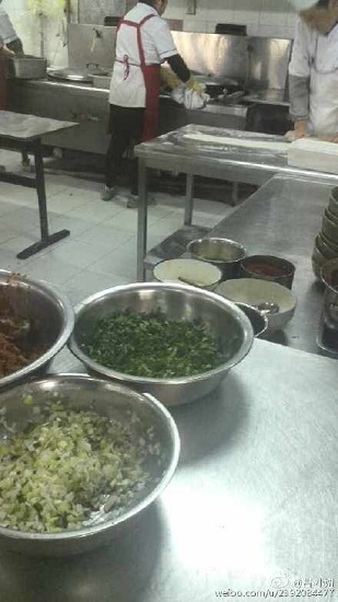 1月19日下午1時50分,新浪微博網(wǎng)友@茜-小妞發(fā)帖稱,中午在食堂二樓吃飯,牛肉拉面那一家居然在料理臺上洗衣服,真的是醉了??匆娭笏查g沒有食欲了。真的是一件讓人惡心的事。同時,在微博上還上傳了兩張照片。其中一張顯示,一名系著紅色圍裙的女子背對鏡頭站在灶臺前,旁邊放著一件揉在一起的白色工服。而在女子面前,則擺放著一個不銹鋼的盛菜盆。而就在女子身后,一名男性面點(diǎn)師傅正在揉面。