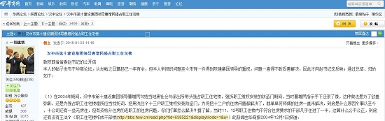 (3)就目前給予十公司二處無房老職工分的15平米的單間房子,和領(lǐng)導(dǎo)所住的160平米富麗堂皇、光彩照人的住房相比,差距實在太大,這種不公平現(xiàn)象相信任何人都無法接受。。請上級領(lǐng)導(dǎo)盡早解決二處無房住的幾十戶血汗流干的建筑老職工住房問題。( http://bbs.hsw.cn/read.php?tid=6222927&displayMode=1&u=)
