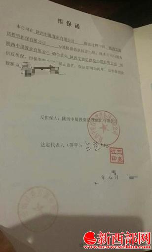 在投資者提供的借款合同中記者看到,許多人都是和“陜西中廈置業(yè)有限公司”簽的合同,而陜西艾德諾擔(dān)保有限公司則在合同中以“保證人”身份出現(xiàn)。