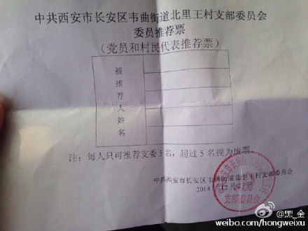 據(jù)新浪微博爆料:長(zhǎng)安區(qū)北里王村的違規(guī)群眾推薦黨員會(huì)議正在進(jìn)行,好多代表群眾都不知道誰(shuí)是黨員,推薦票都是交的白卷!