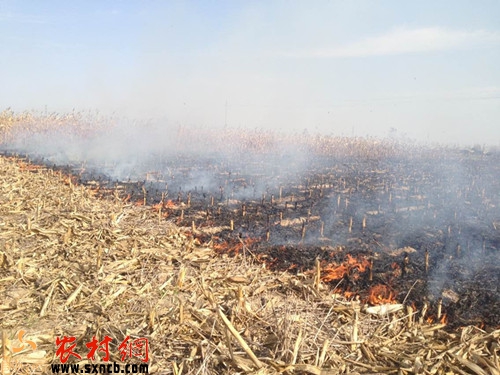 記者在現(xiàn)場看到,明火燒的正旺,一大片玉米地的秸稈已被焚燒的差不多。據(jù)附近一村民講,這大概就是上午九時開始燒的,已經(jīng)燒了兩個多小時。