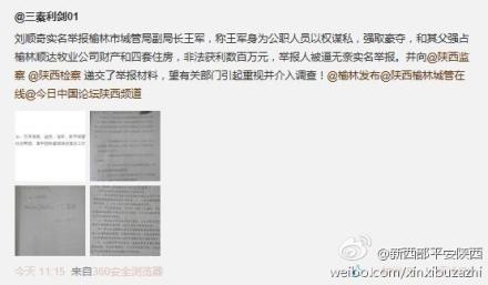 網(wǎng)友爆料:劉順奇實(shí)名舉報(bào)稱王軍身為公職人員以權(quán)謀私,和其父強(qiáng)占榆林順達(dá)牧業(yè)公司財(cái)產(chǎn)和四套住房,獲利數(shù)百萬元,舉報(bào)人被逼無奈實(shí)名舉報(bào)。