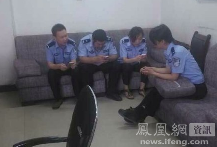 丟電動(dòng)車(chē)打110無(wú)人來(lái) 到派出所見(jiàn)多名“民警”在玩手機(jī) 網(wǎng)友根據(jù)“民警”肩章分析,有兩個(gè)是民警,其他人為實(shí)習(xí)生(圖片來(lái)源:人民日?qǐng)?bào))