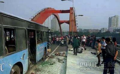 通報稱,12日下午16時50分左右,宜賓市公交公司一車牌號為川Q18757的14路公交車,在行駛至該市城區(qū)南門橋時突然發(fā)生燃燒,造成交通中斷。事件發(fā)生后,公安、交通、消防、醫(yī)療、應(yīng)急、安監(jiān)等相關(guān)部門和人員迅速趕到現(xiàn)場處置。
